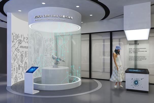 “企業(yè)數(shù)字化”、“騰飛未來”等板塊,展廳主要通過搭建多個(gè)場景還原訊飛產(chǎn)品在現(xiàn)代生產(chǎn)生活中的應(yīng)用,同時(shí)通過互動(dòng)觸摸屏、物體識(shí)別桌、機(jī)械臂、VR等創(chuàng)意性展項(xiàng),將訊飛企業(yè)理念、產(chǎn)品核心賣點(diǎn)與展項(xiàng)及場景相融合,智能化的展項(xiàng)與科技風(fēng)的空間風(fēng)格既凸顯了科大訊飛企業(yè)智能化的特點(diǎn),同時(shí)也助力展示企業(yè)的核心優(yōu)勢與價(jià)值理念。